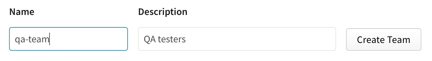 In the "Name" and "Description" fields, type a team name and helpful description. Team names must be lower case and cannot contain spaces or punctuation.